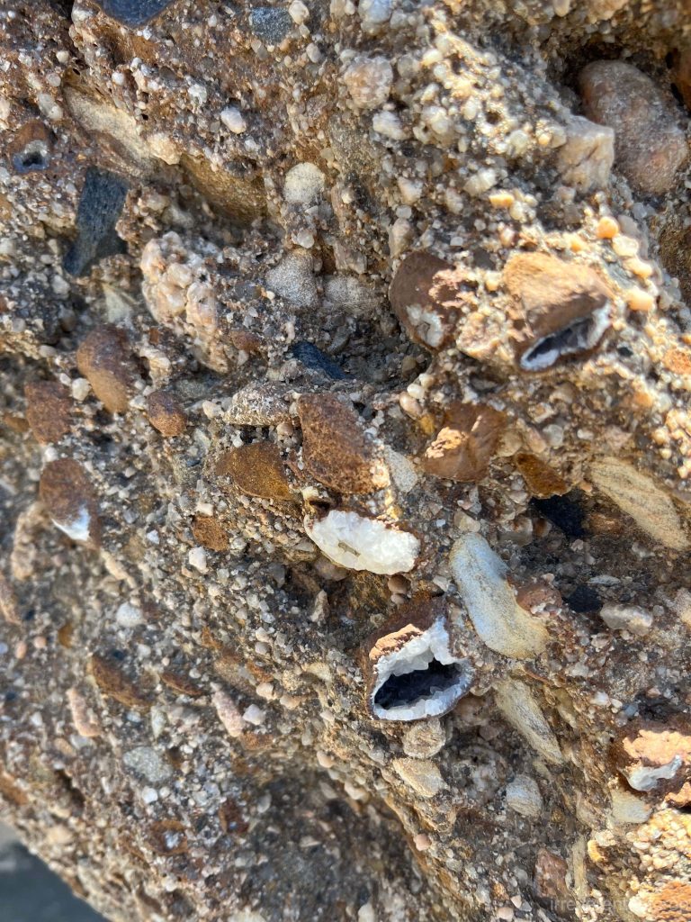 Wealthy merchants and magnates of Cádiz favored using a local sedimentary rock called “ostionera,” for their mansions. Ostionera is a porous sedimentary rock formed by remains of seashells and eroded stones. Many buildings in the old town still retain this material, showcasing clear oyster shell patterns. Even the staircases in the old streets are made of similar materials. Located outside the Gibraltar Arc, Cádiz is situated in a low-lying, flat area that was once a shallow sea during the early Cenozoic era, resulting in abundant sedimentary deposits and rich fossilized marine life.