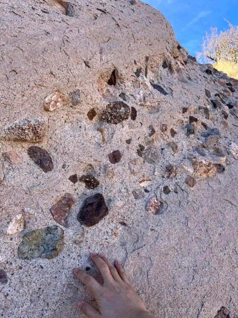 之后我们便沿着断层往东南方向前往另一处露头:“摩门石”(Mormon Rocks)。去程的路上公路两侧分属不同的地壳板块。