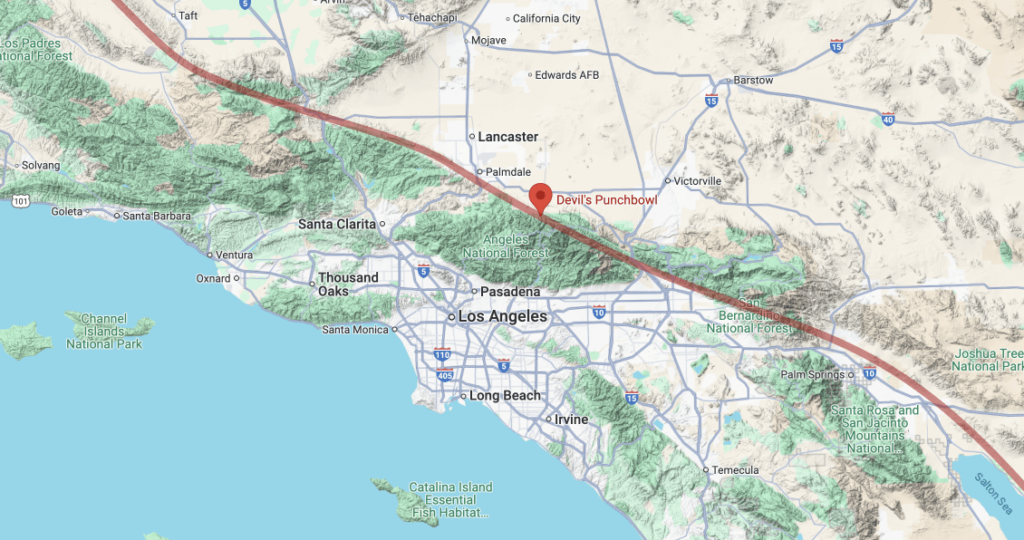 洛杉矶北边,有一处十分壮观的砂岩露头——“恶魔的酒碗”(Devil’s Punchbowl)。