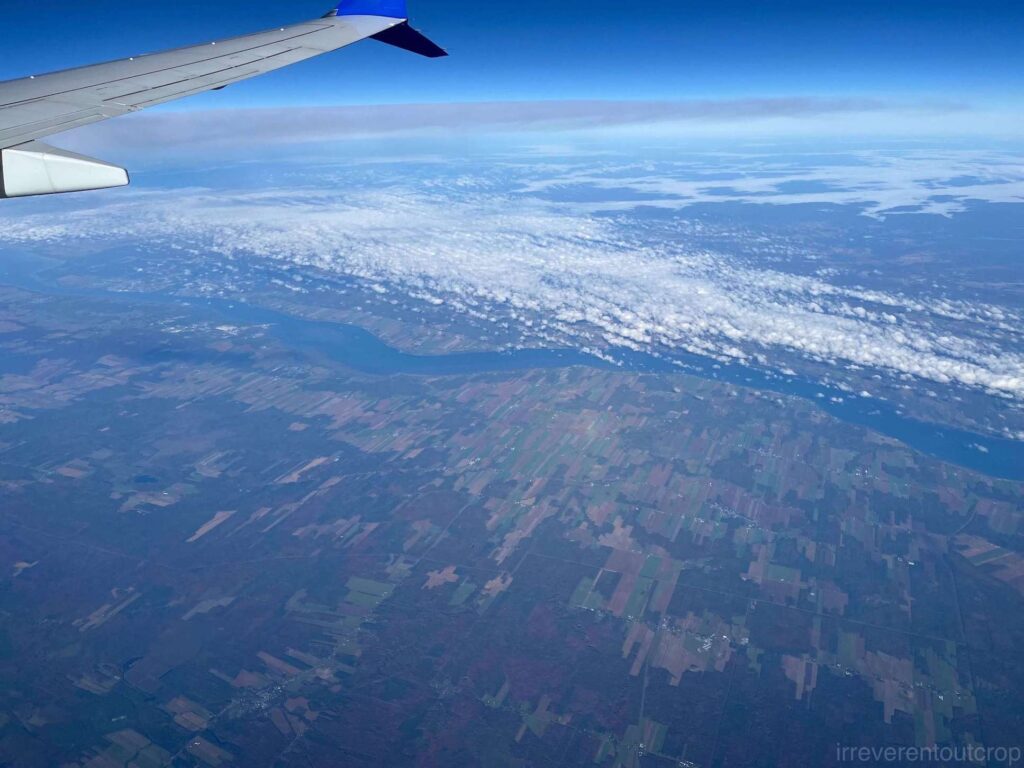 我们离开格陵兰的航班,刚好是2025年格陵兰和美国之间的最后一班直飞航班。拉布拉多海上方依旧云层很厚,但地面部分我们还是看到了不少的景色。而从纽约飞回西海岸的那一趟,全程窗外都光线充足、空气通透,所以特开一篇番外,作为我2025年北美极地之旅系列的收官。