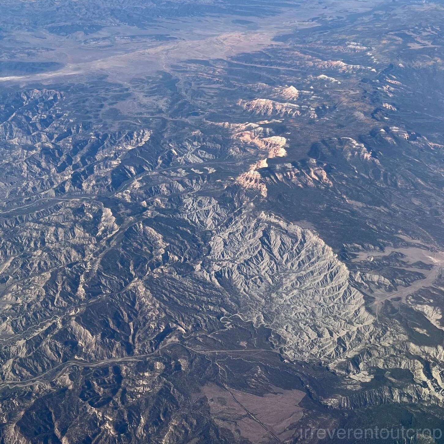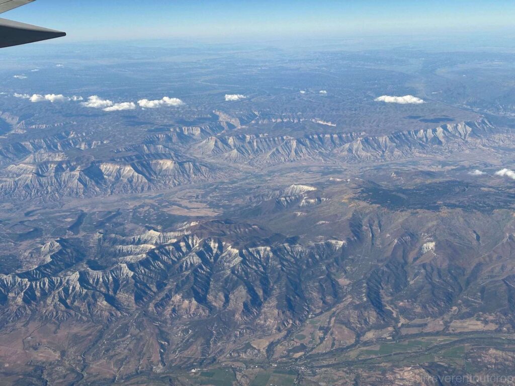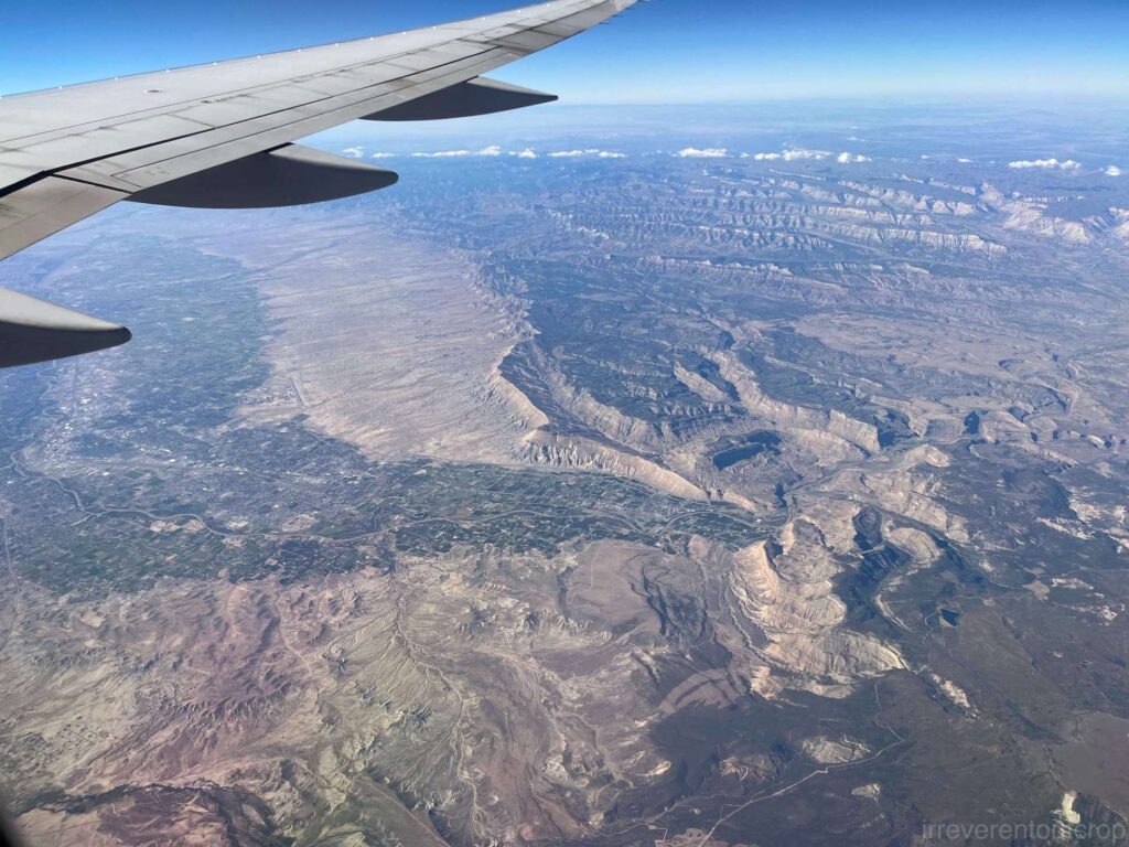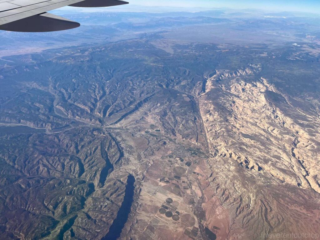 飞过Grand Junction后不久,我们便进入了犹他州的地界。虽然科罗拉多(Colorado)在西班牙语里的本意是”红色“,但其实比不上犹他的地层红。