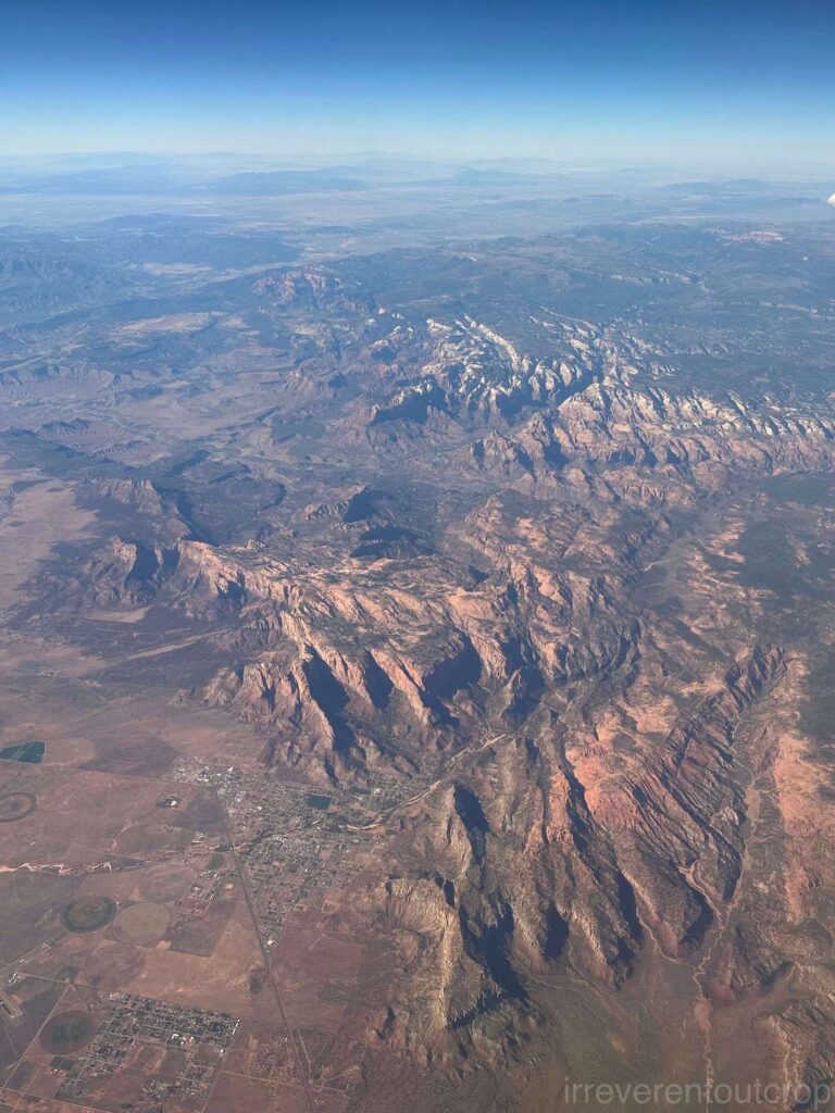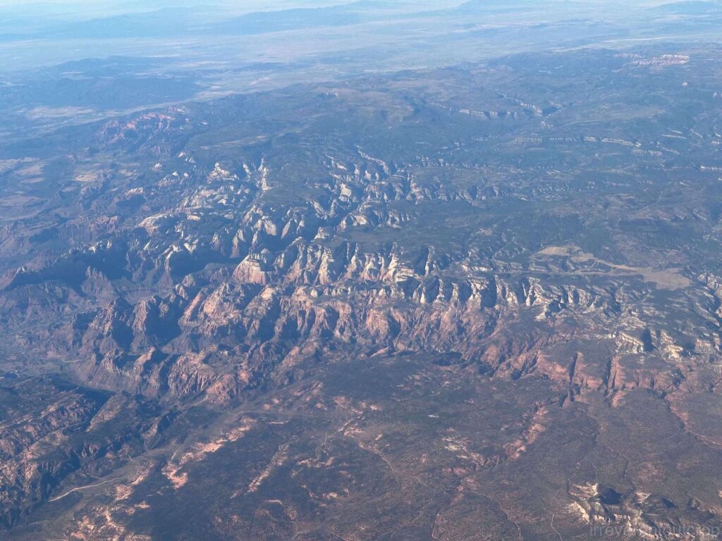 不久后我们便抵达了锡安国家公园(Zion National Park)上空。这是我第一次从空中看整个锡安的全貌。