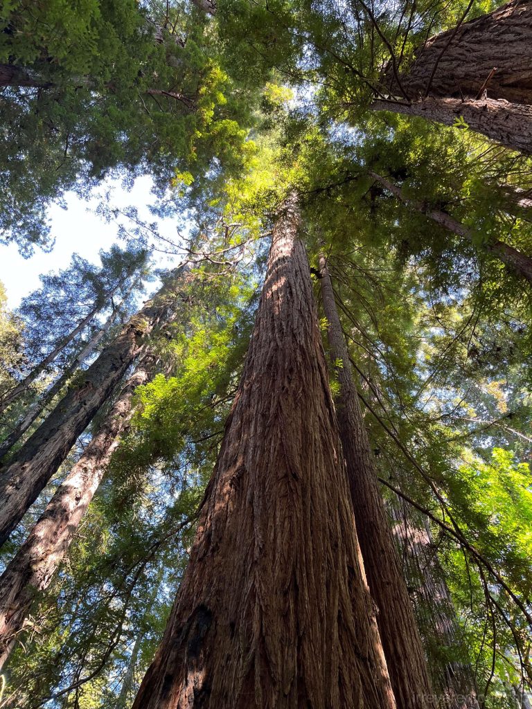 最高那棵116米的Hyperion所在的Tall Trees Grove,是红木溪峡谷里的一小片水边平地。大部分的红杉由于实在太高,很难看到全貌。