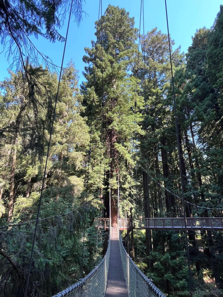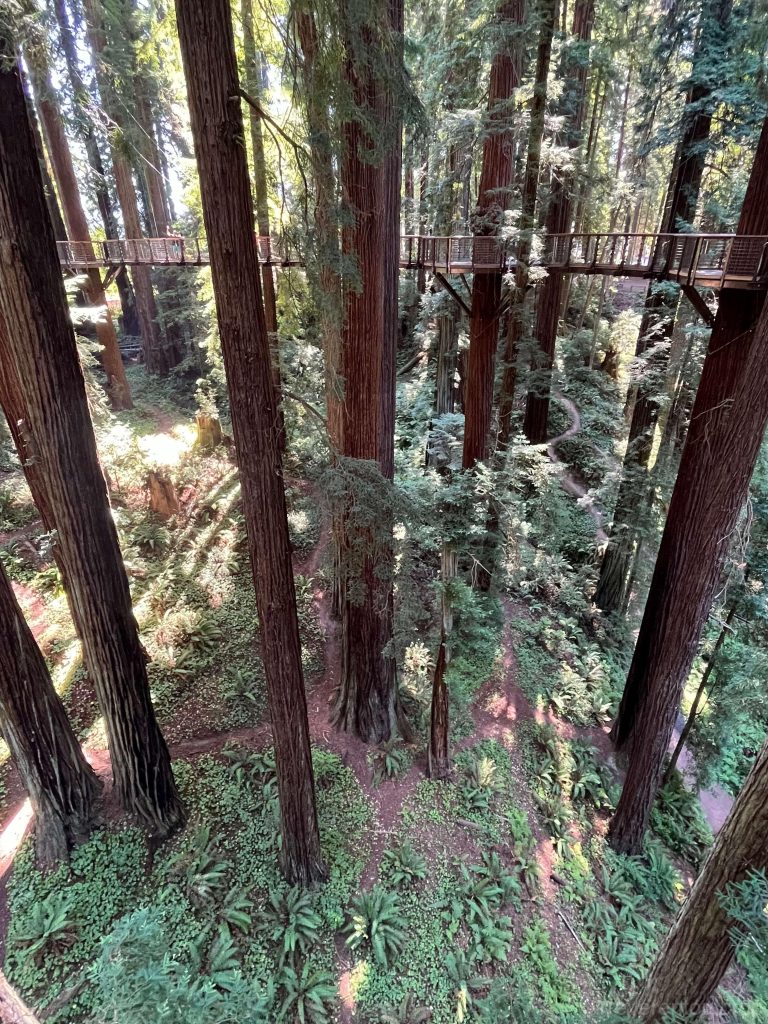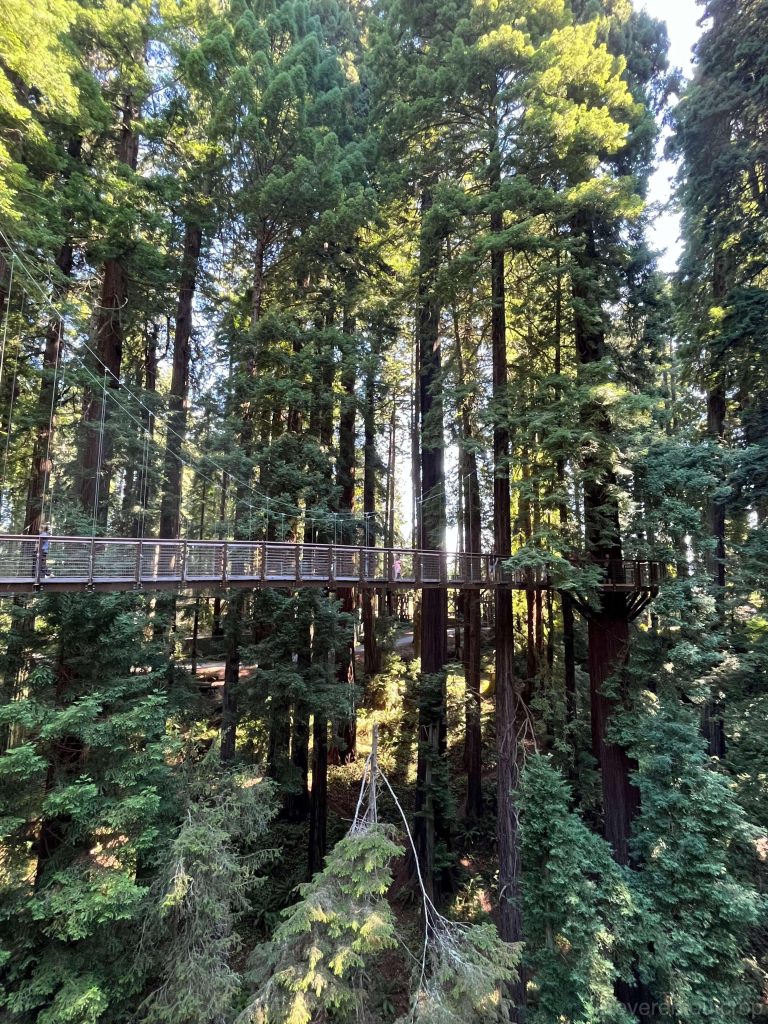 此外,在国家公园外面的小镇尤里卡(Eureka),还专门弄了一个红杉树公园的空中步道,把吊起的栈桥修到了树中间,体验很不错,可以近距离接触高处的树干。