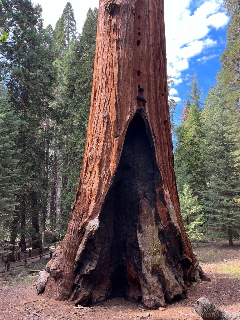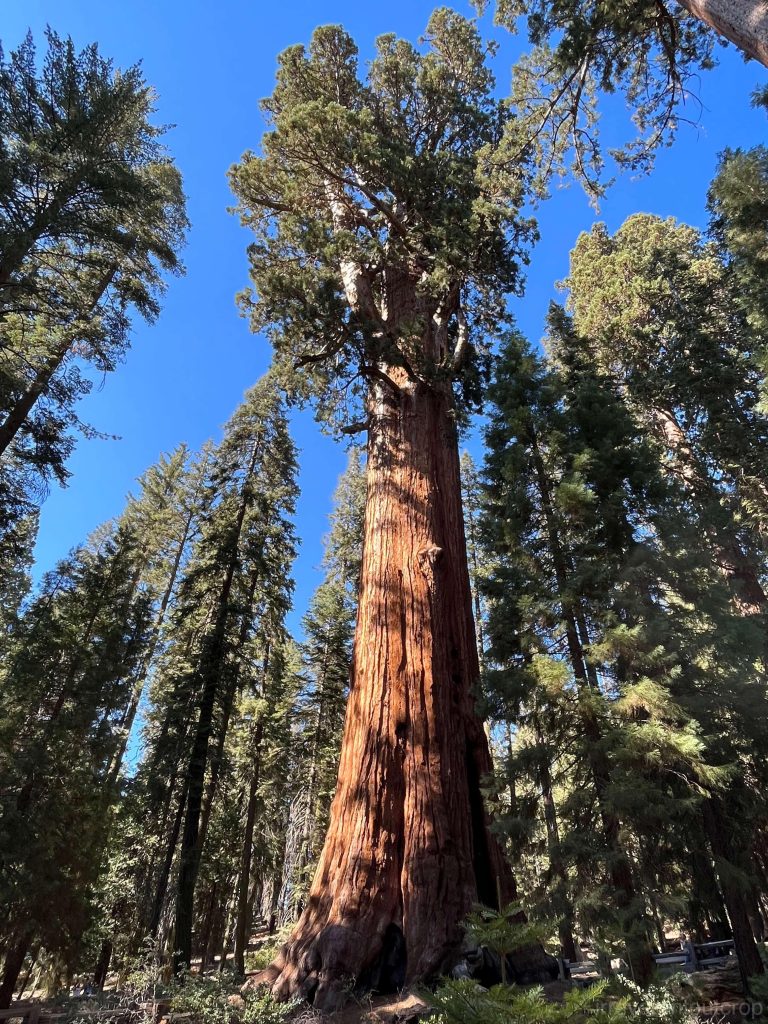 体积最大的一棵巨杉叫General Sherman,树龄估计2200年左右。不像之前去看的最老的和最高的那两棵都要被匿名保护起来,这棵General Sherman巨杉高调得很。