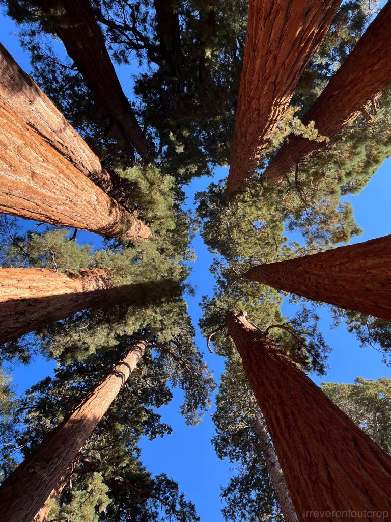 离General Sherman不远有一片叫“议会”的几棵巨杉,在阳光的衬托下,感觉比单棵的General Sherman更有异境之感。