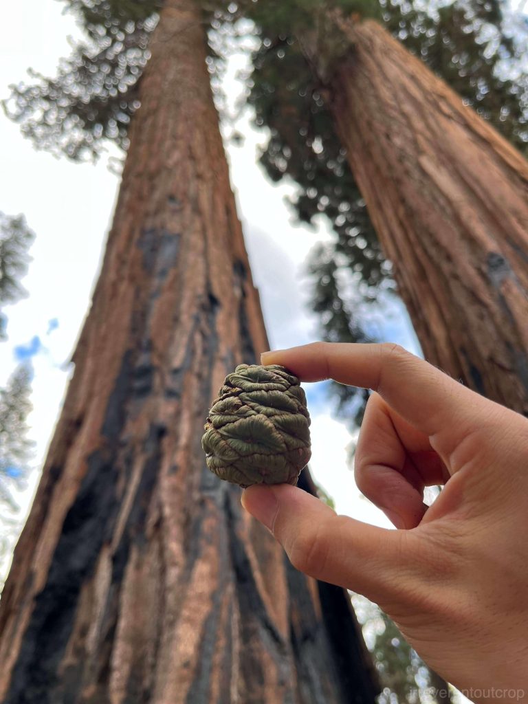 巨杉的一生与火结缘,树皮是厚厚的防火层,每次山火之后——只要不是灭绝性的巨大山火——周围的竞争者都被烧成了灰,巨杉便可以独享土壤的养分,而巨杉的种子也能感知野火,会等火烧完了,满山都是木灰和肥料,这时候才发芽。